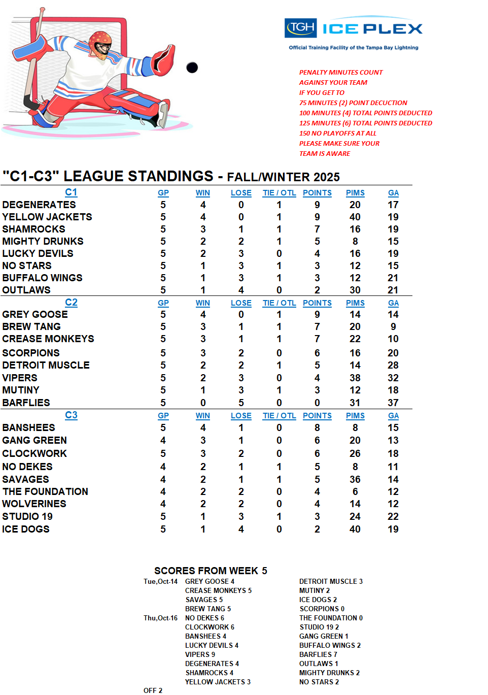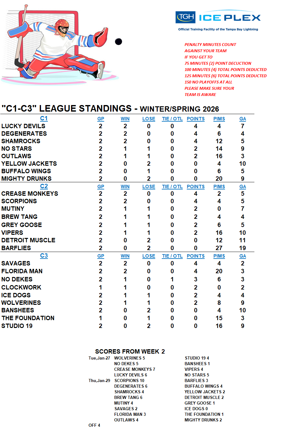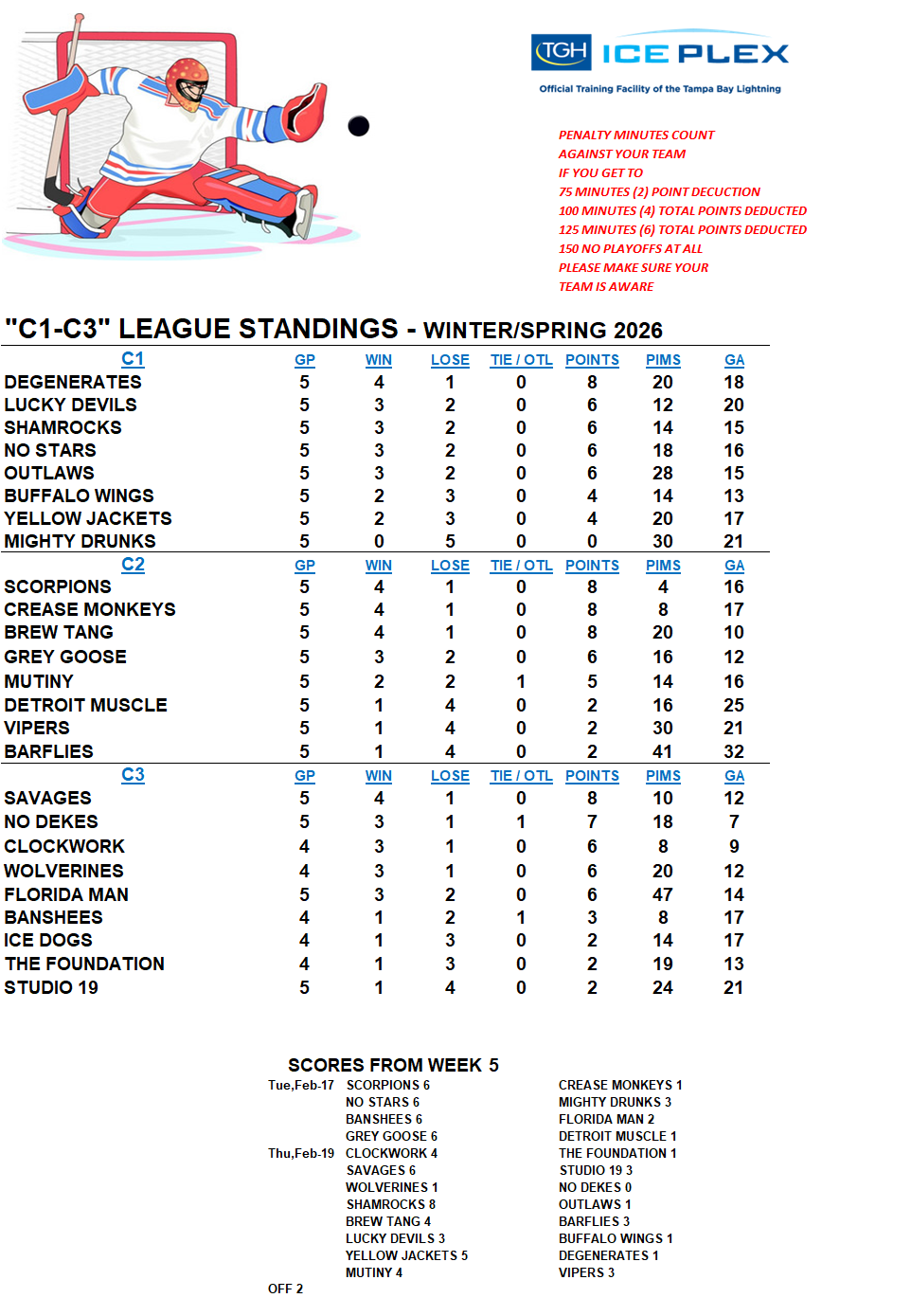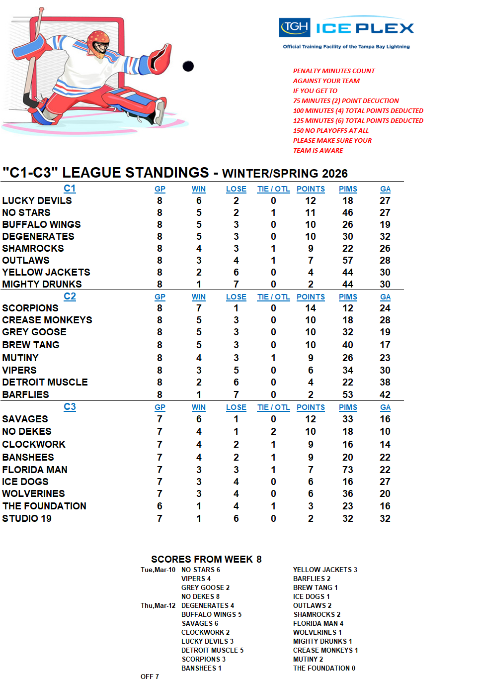 C-League The C-League has three levels of moderate skill level players. Games are played Tuesday through Friday nights beginning at 7:00pm. For current schedules, standings, and statistics see below.