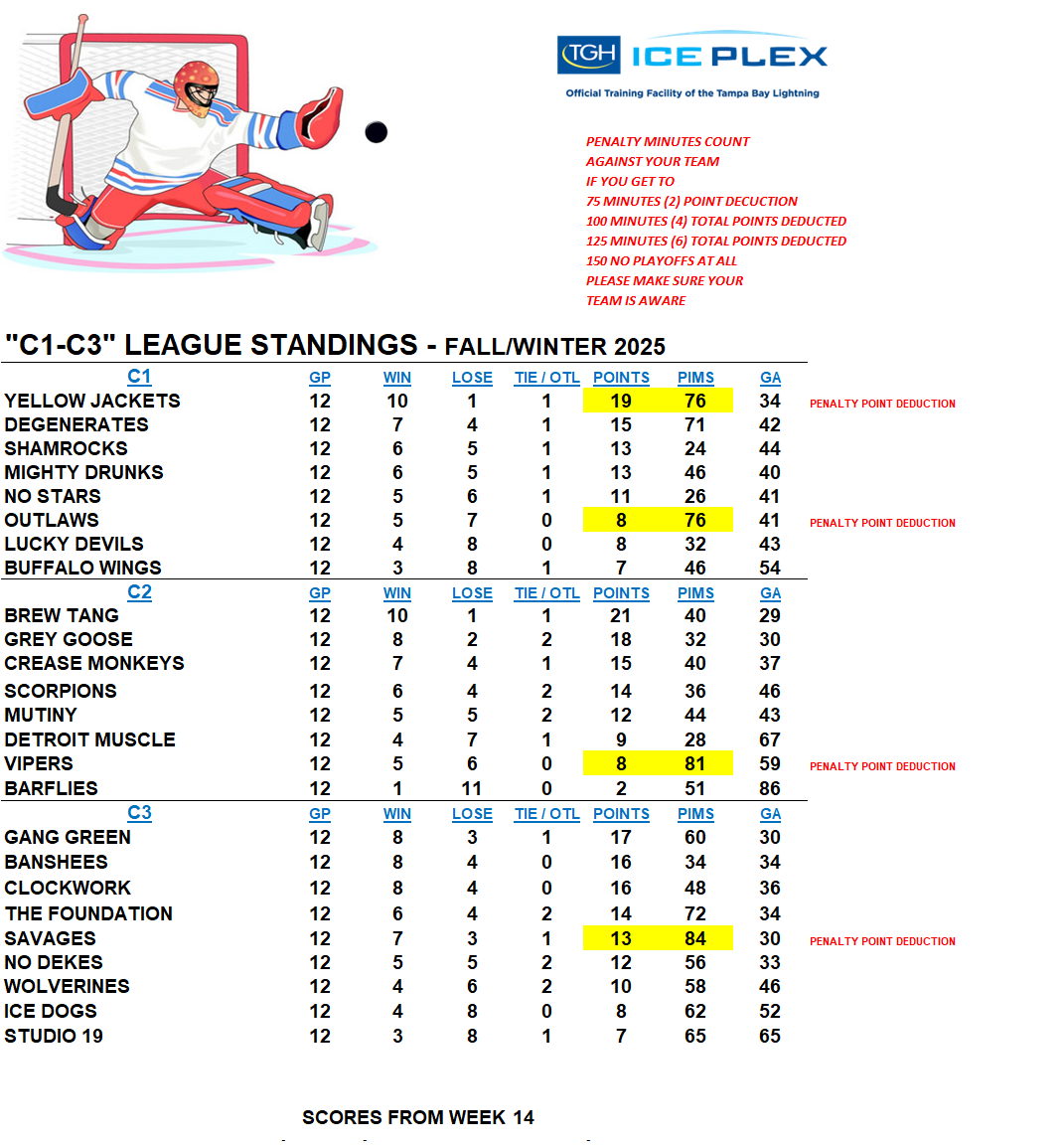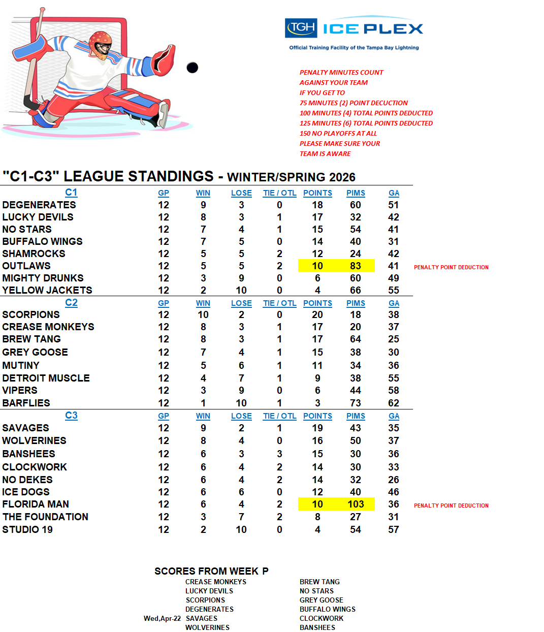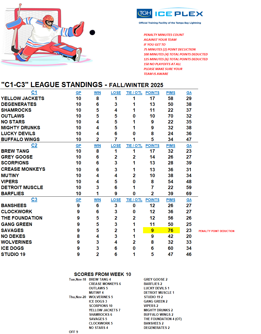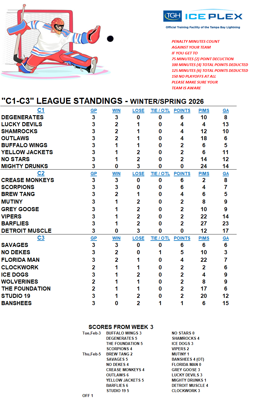 C-League The C-League has three levels of moderate skill level players. Games are played Tuesday through Friday nights beginning at 7:00pm. For current schedules, standings, and statistics see below.