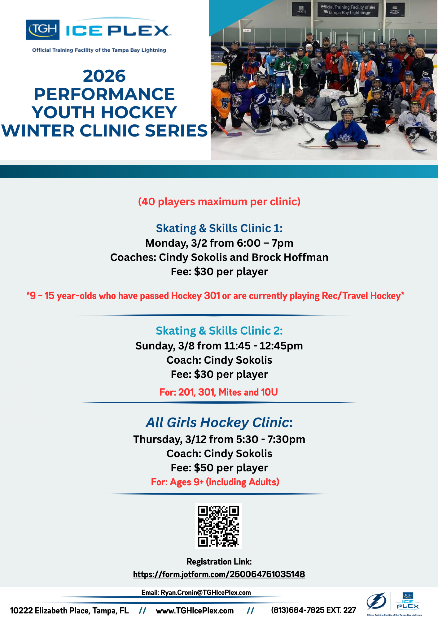 Throughout the year, the Ice Sports Forum holds multiple camps and clinics to improve every aspect of your game. Instructors include coaches from the Lightning Made Hockey program, USA Hockey, former professionals including former Tampa Bay Lightning players, and ISF personal instructors. Check out our calendar for a full list of camps and clinics. Find camp registration forms below.