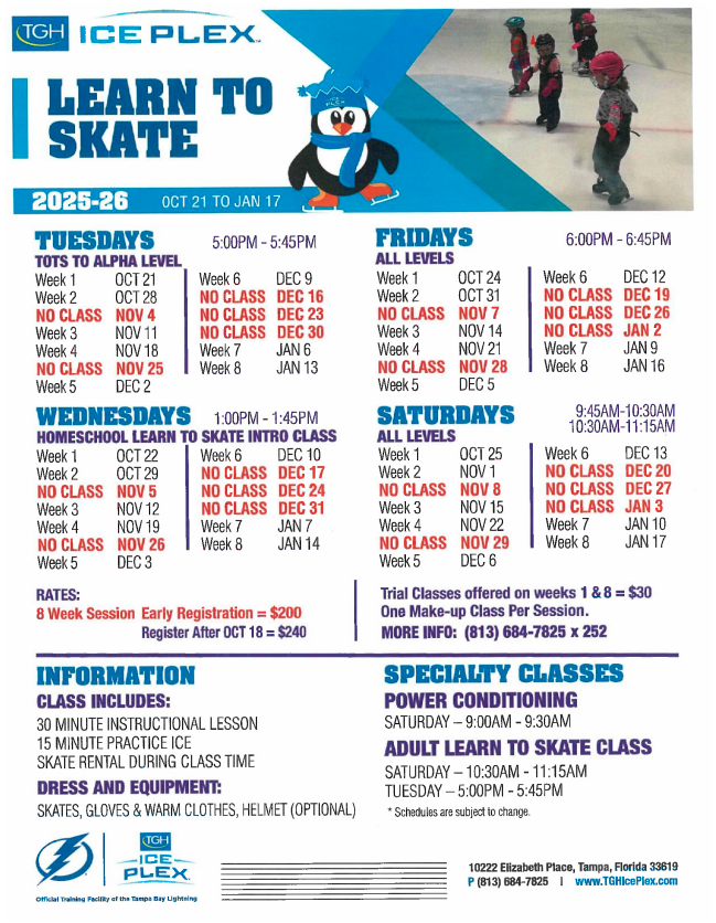 Please email Tommy Brannen at Tommy.Brannen@TGHIceplex.com for more information.