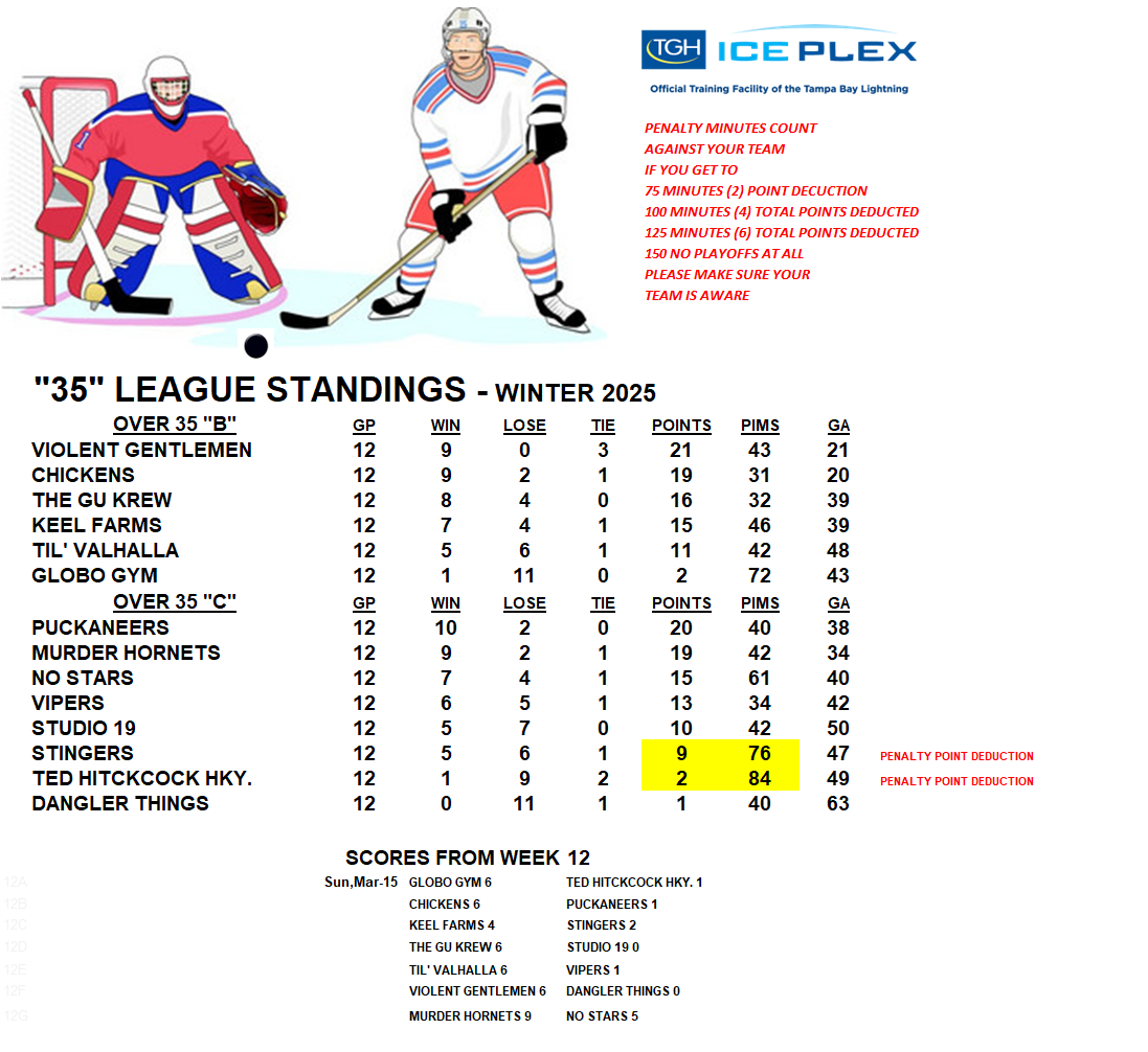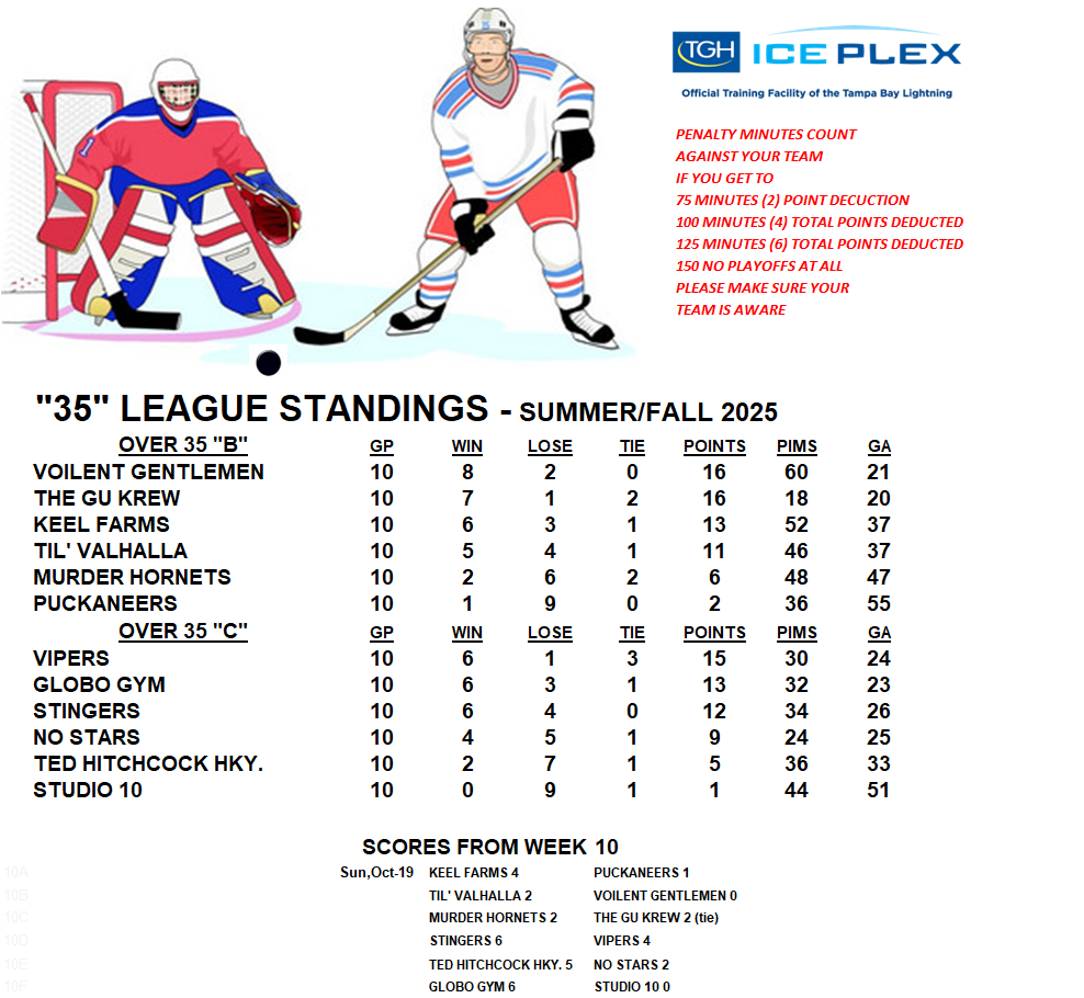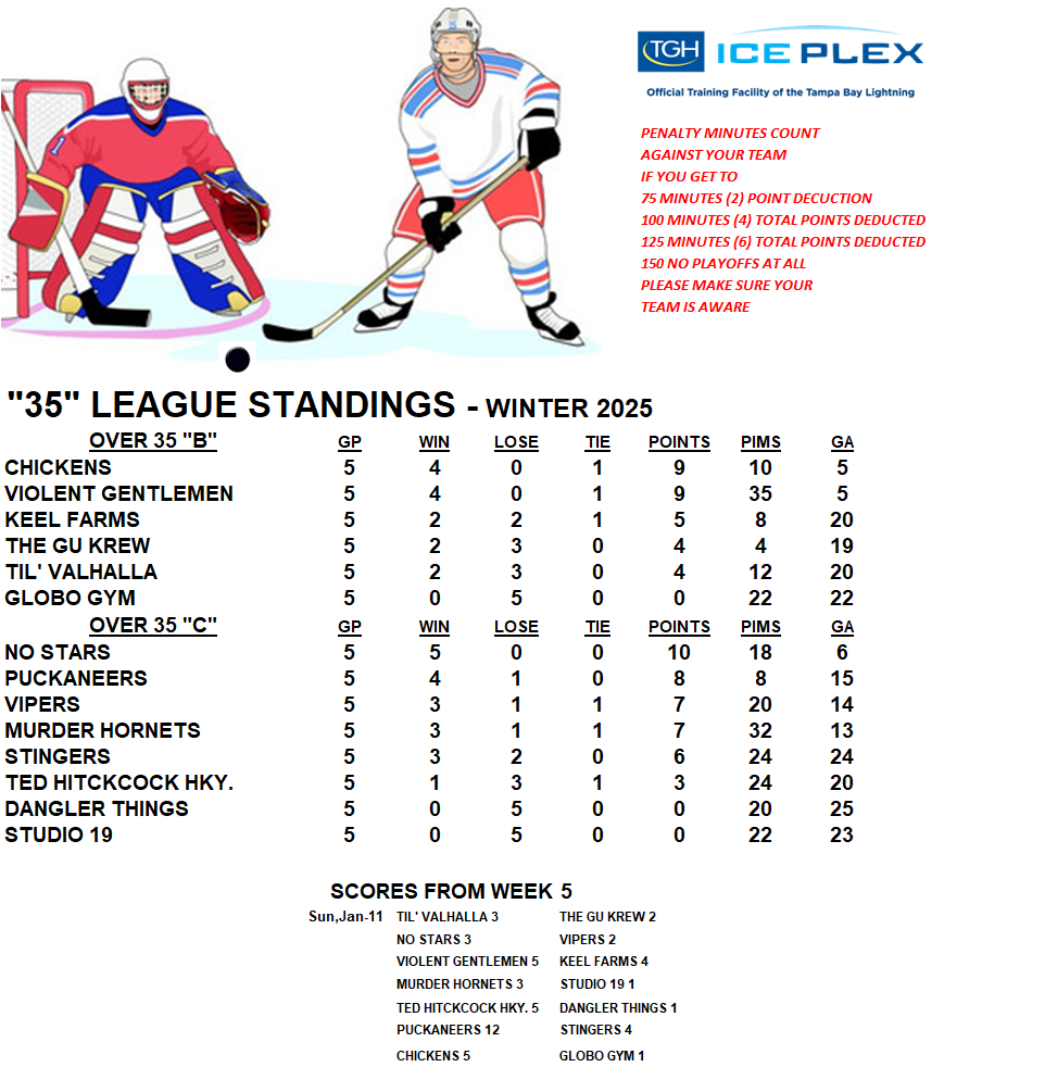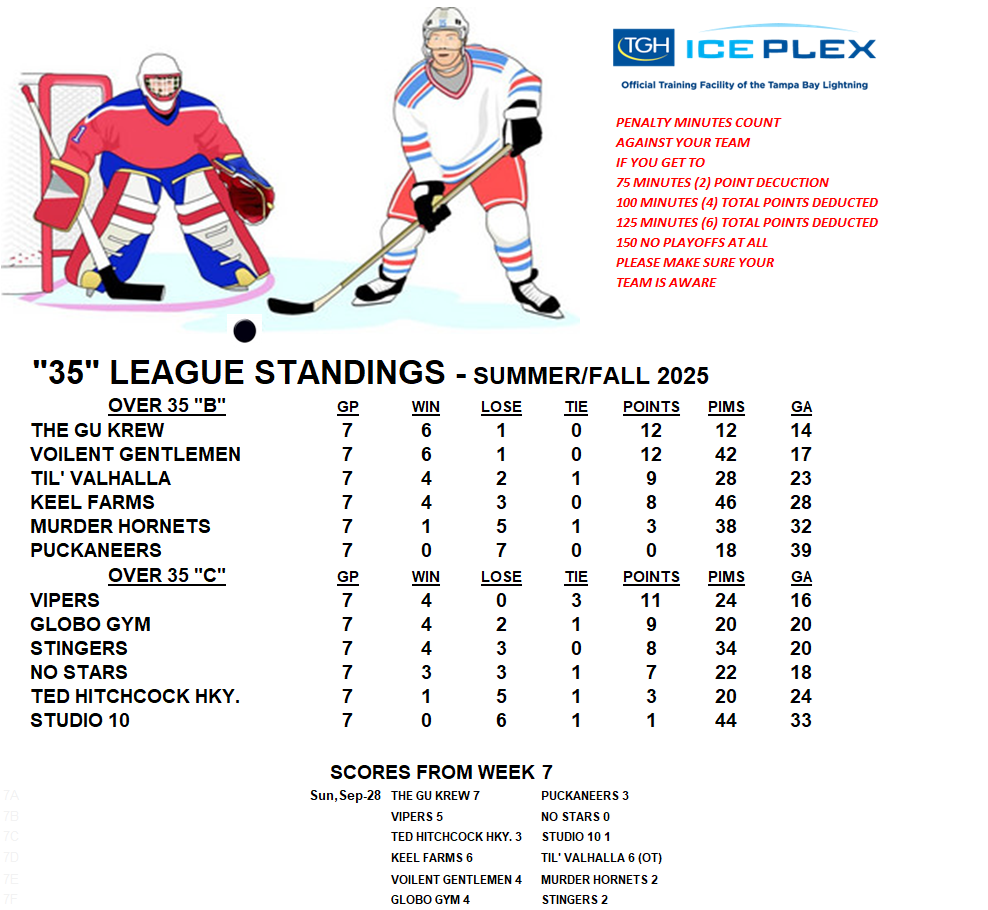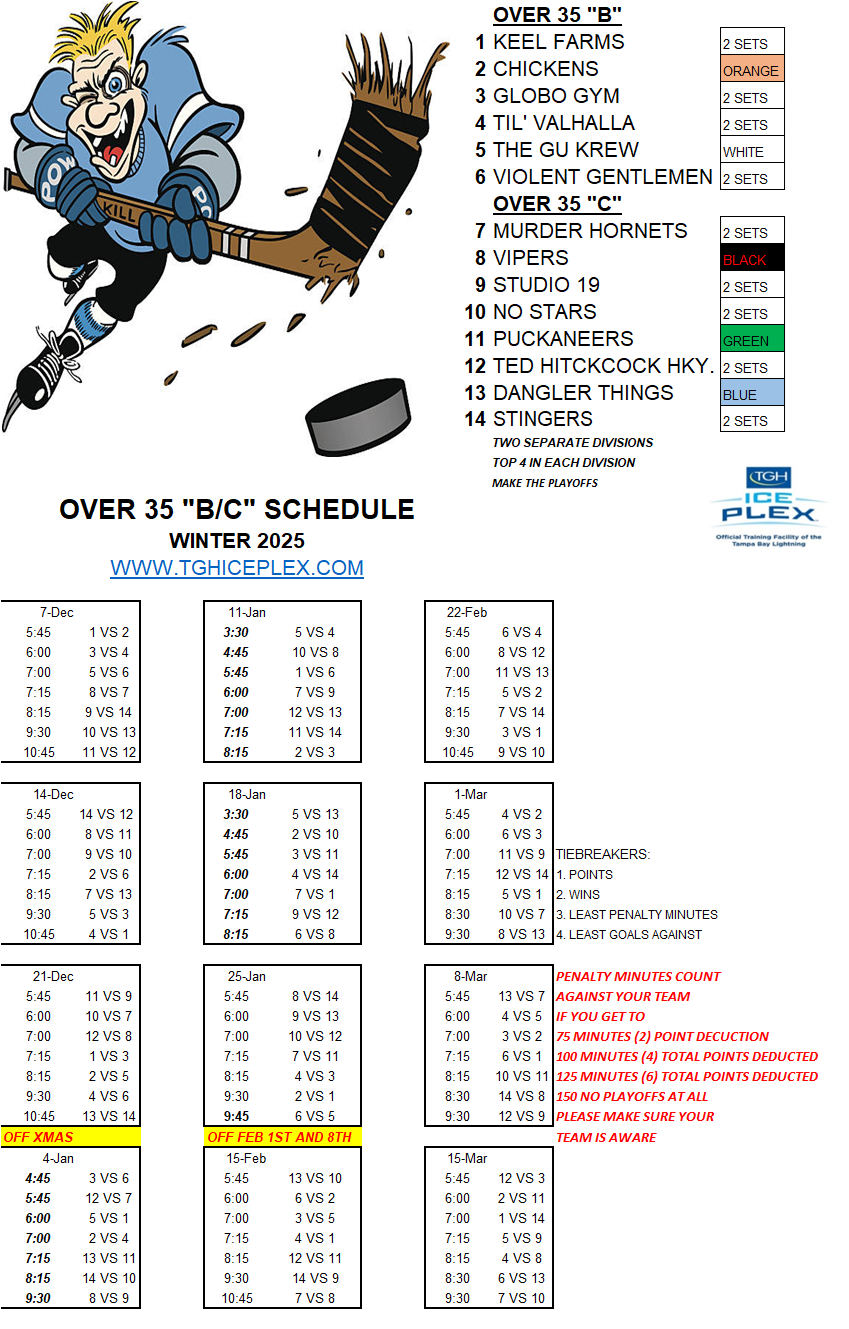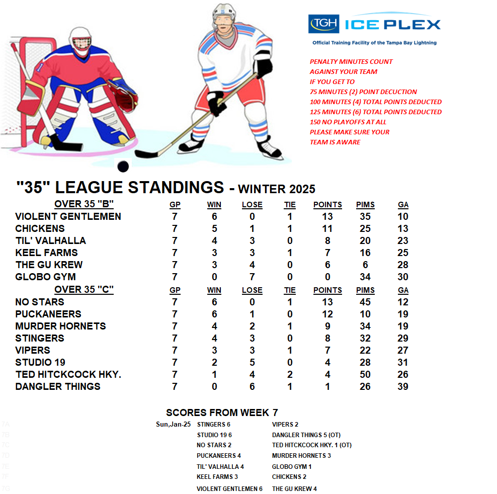 Over 35 League The Over 35 League has a general mix of C level players. Games are played Sunday evenings beginning at 5:45pm. For current schedules, standings, and statistics see below.