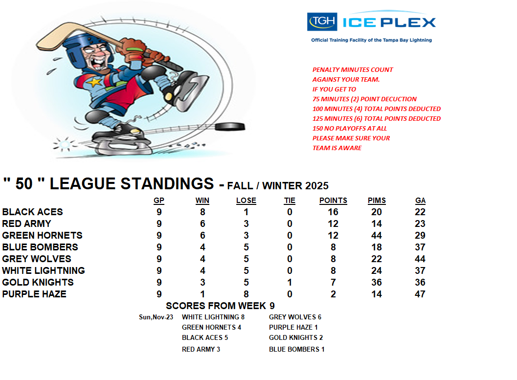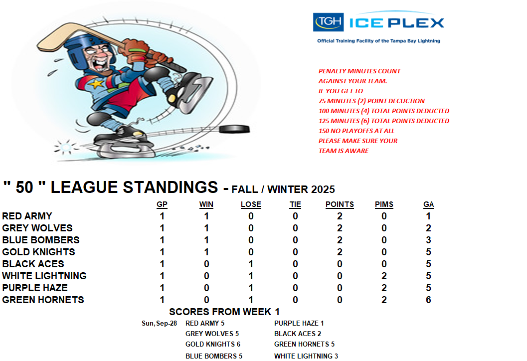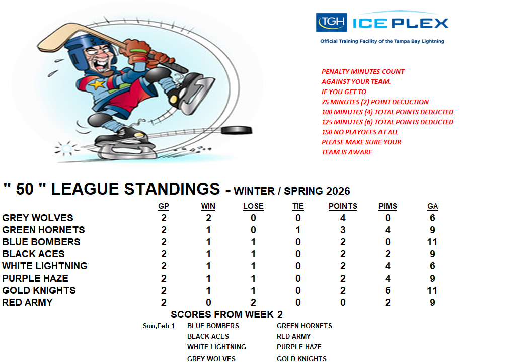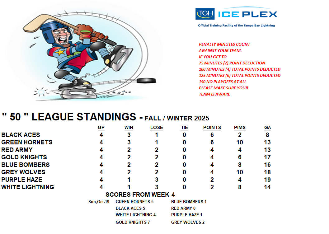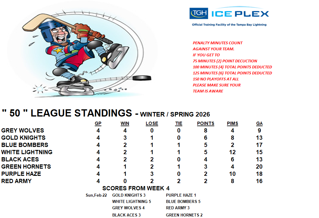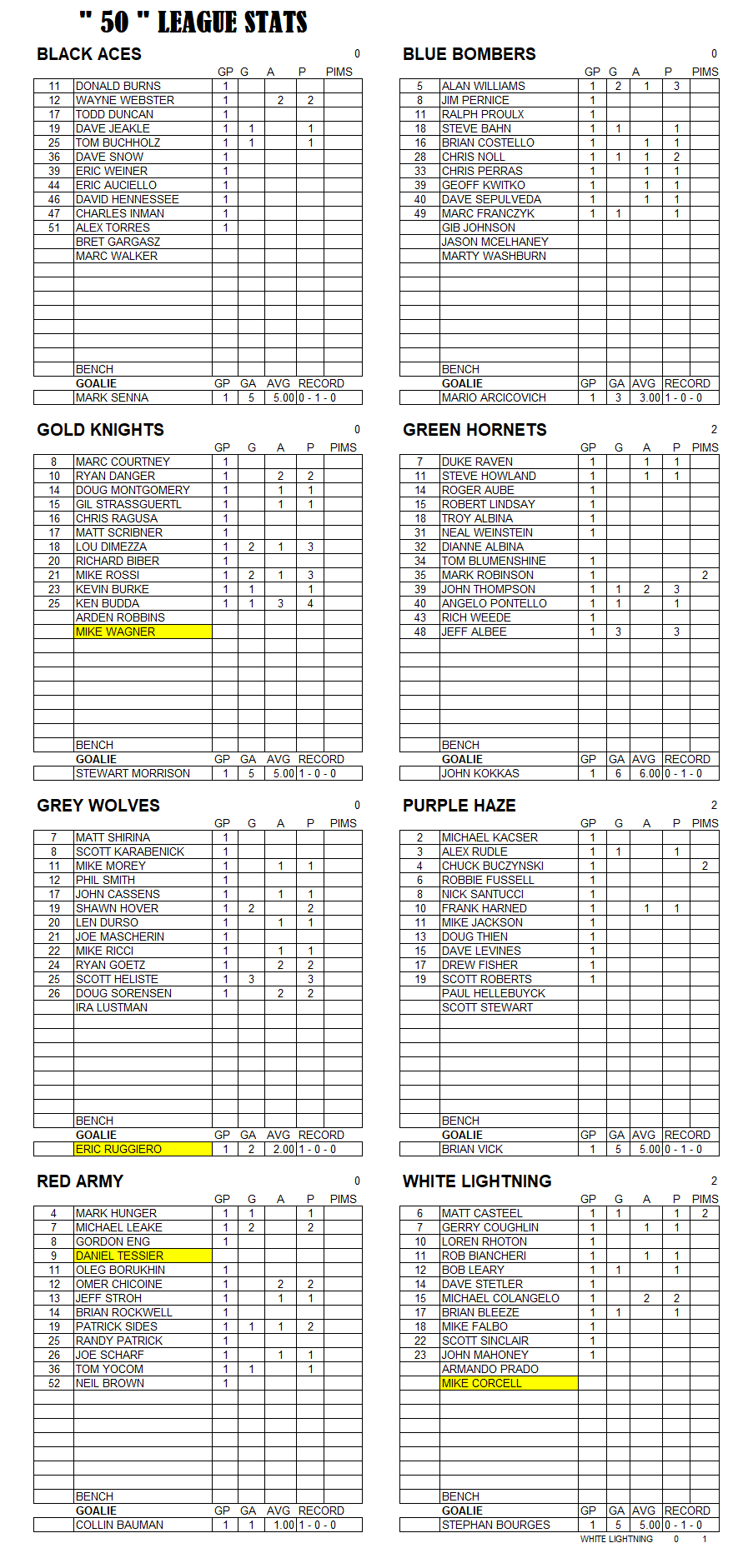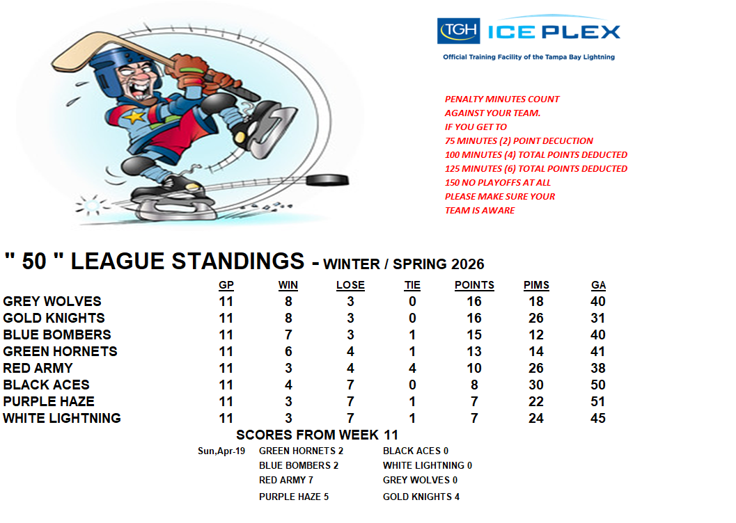 Over 50 League The Over 50 League consists of players of all skill levels. Games are played Sunday afternoons from 2:15pm to 4:45pm. For current schedule, standings, and statistics see below.