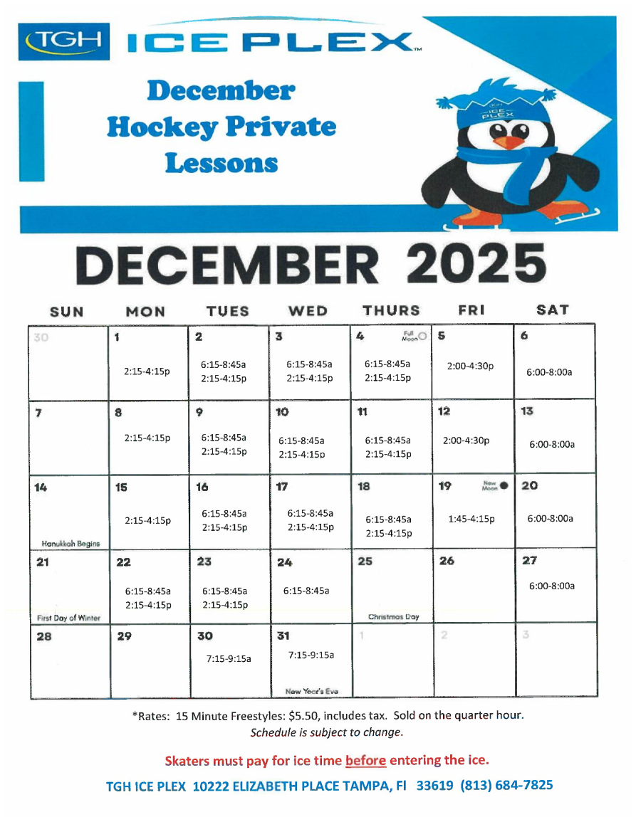 The instructors at the TGH Ice Plex are available for private as well as group lessons. All of our staff instructors are highly qualified and are certified ISI, PSA or USA Hockey.