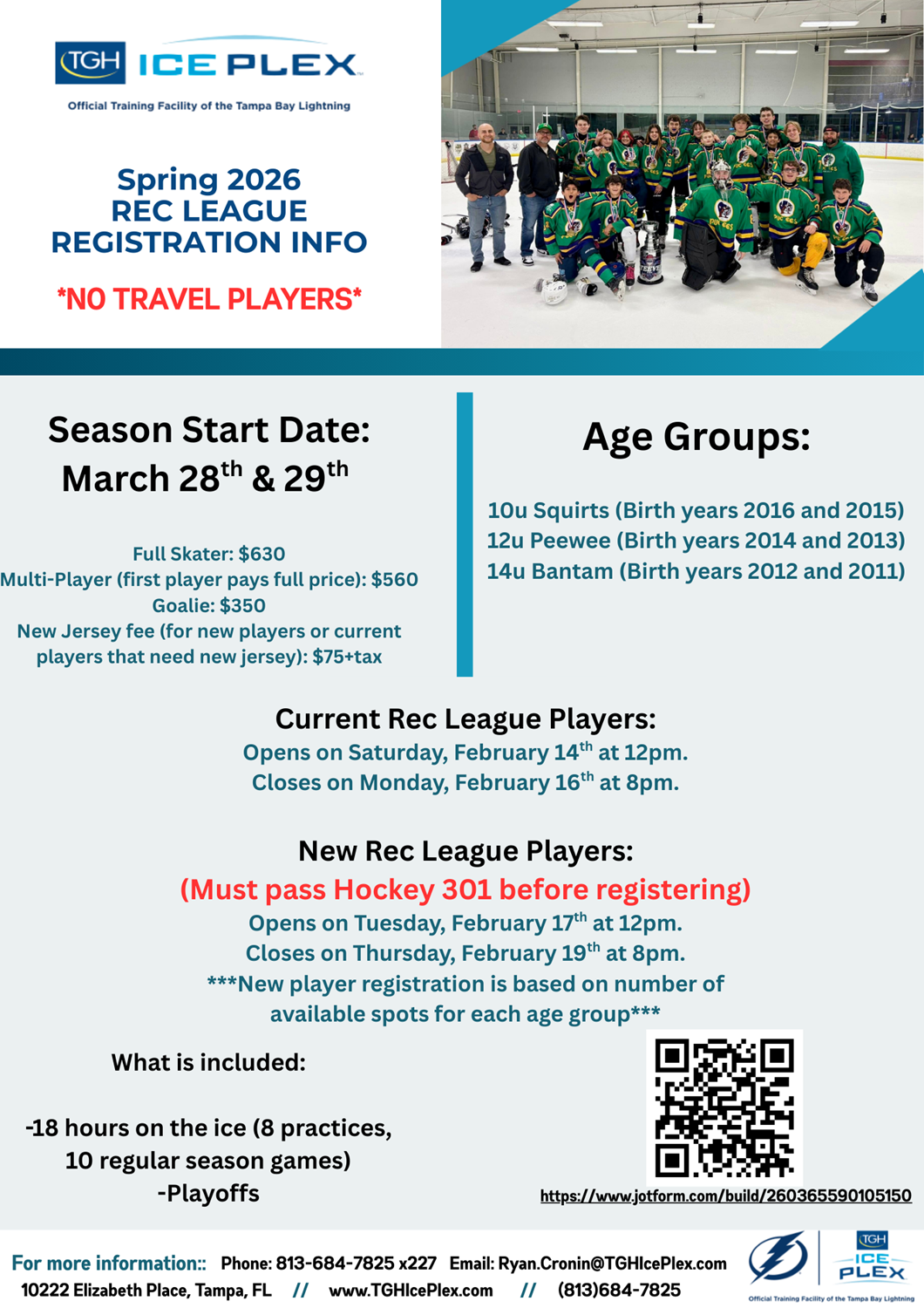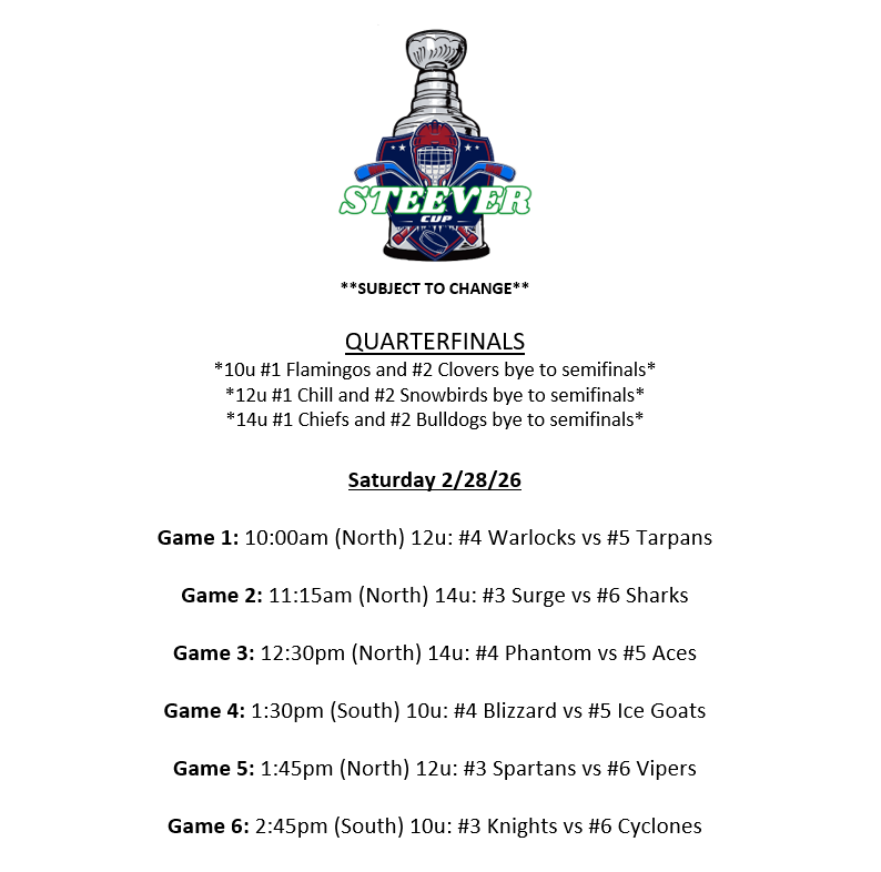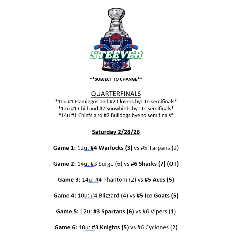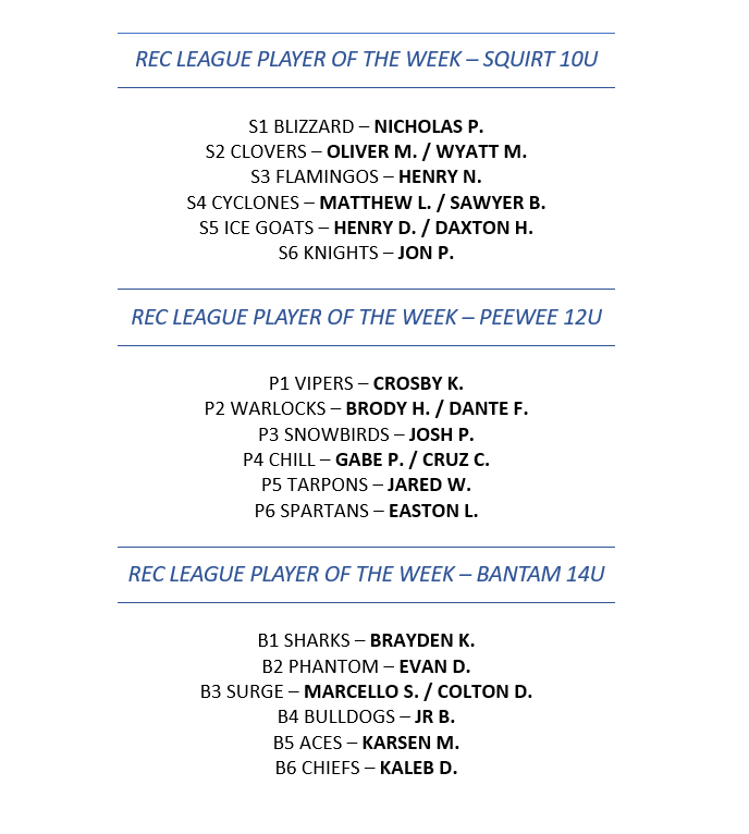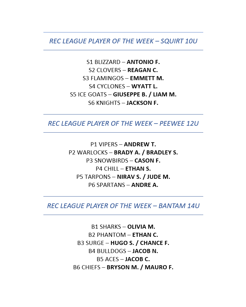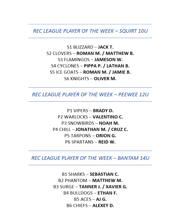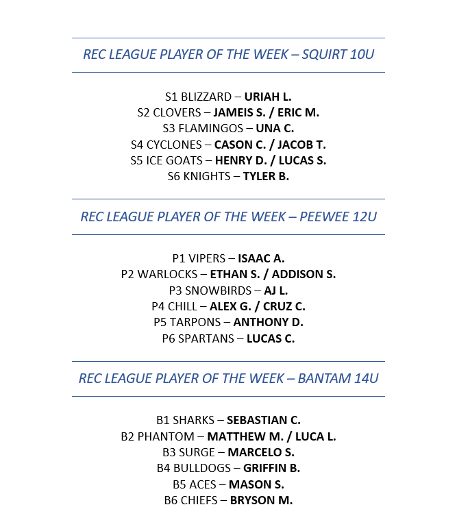 Background Screening for Coaches USA HOCKEY REGISTRATION SAFESPORT CERTIFICATION 8U - Mites - 8 years old born in 2017-2020 12U - Peewee - 12 years old and under born in 2013-2014 10U - squirts - 10 years old and under born in 2015-2016 14U - bantam born in 2011-2012 If you have any questions, please contact Ryan Cronin (813) 684-7825, Ext 227 or Ryan.Cronin@IceSportsForum.com U10 - SQUIRTS REC U12 - PEEWEE REC U14 - BANTAM REC